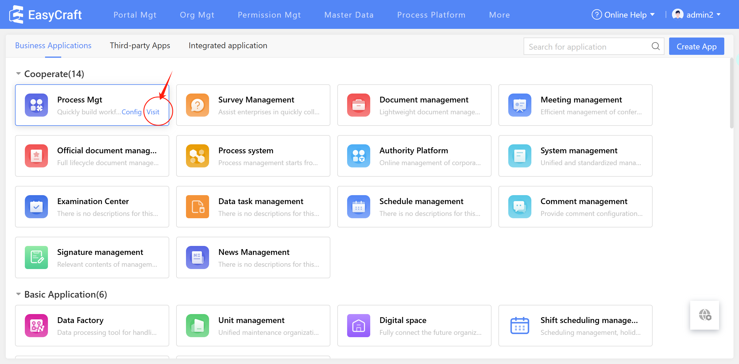 Figure 4.1–1 Entry to Visit The Process Homepage