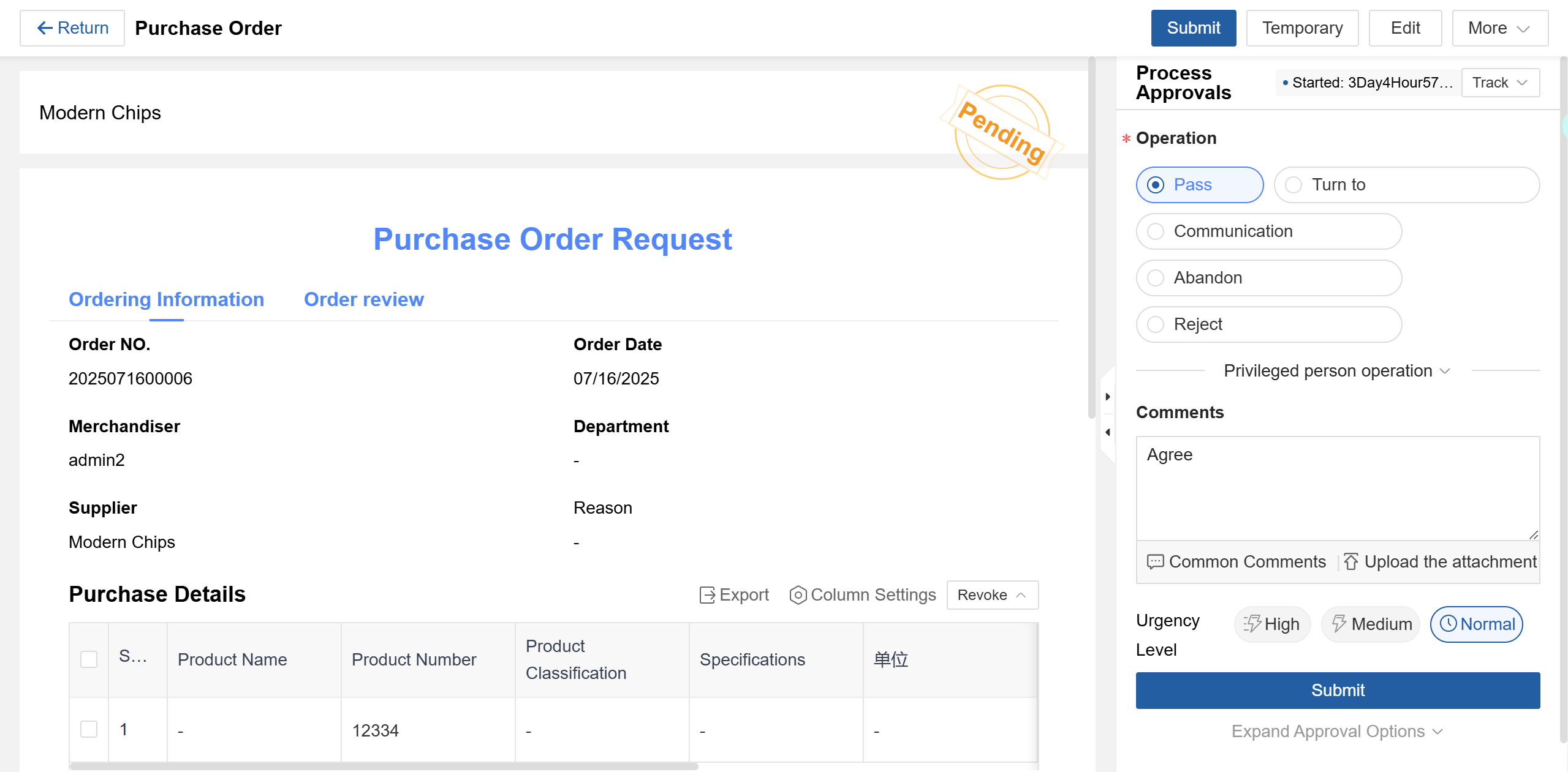 - Approval Comments: Optional field for relevant notes