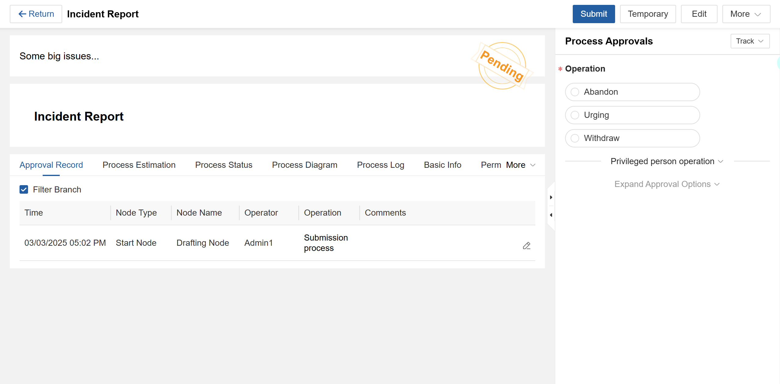 | Approval Records | Complete process history |